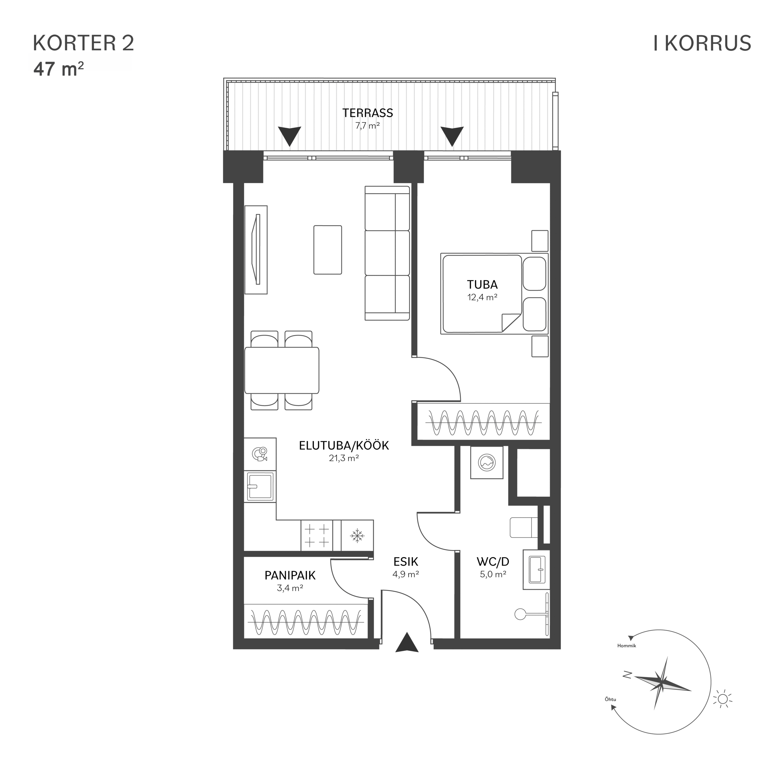 Paldiski mnt 2 1 2 47m2 7.7m2 Büroopind / Vali vaheseintega või -seinteta planeering 148 900 €